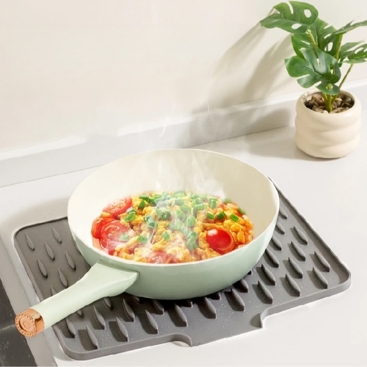 Große Küchen-Silikonmatte zum Abtropfen, mit Ablauf, rutschfest und hitzebeständig