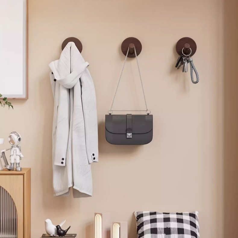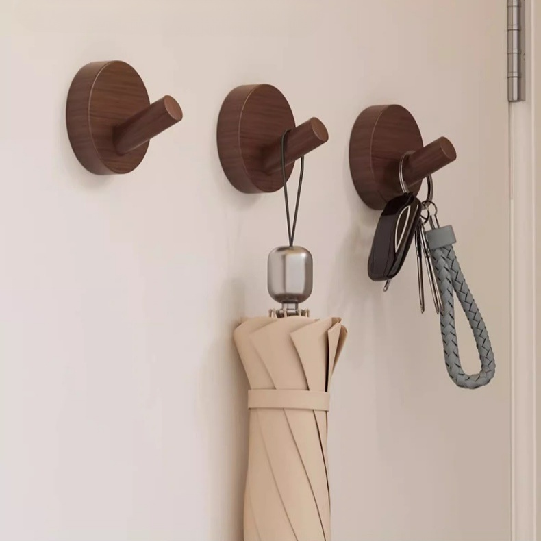 Starker selbstklebender Kleiderhaken aus Walnussholz für Tür und Wand